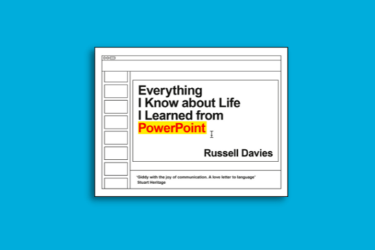 In Russell Davies's new book "Everything I Know about Life I Learned from PowerPoint" goes way beyond how to just write a PowerPoint presentation, but also can be used, by a thrifty reader, to figure out how to make friends and influence people. With PowerPoint.