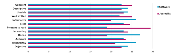 A study conducted by Christer Clerwall reported that: “respondents were subjected to different news articles that were written either by a journalist or were software-generated. The respondents were then asked to answer questions about how they perceived the article—its overall quality, credibility, objectivity, etc.”