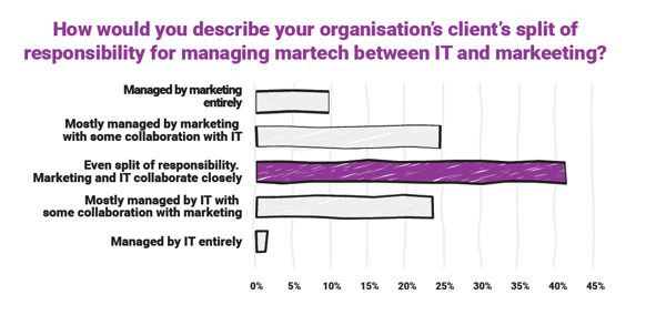 A survey for the 2021/2022 Martech Report found that, in the majority of cases, the responsibility is shared, though it generally leans more towards marketing than IT. (6)